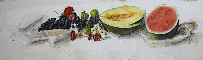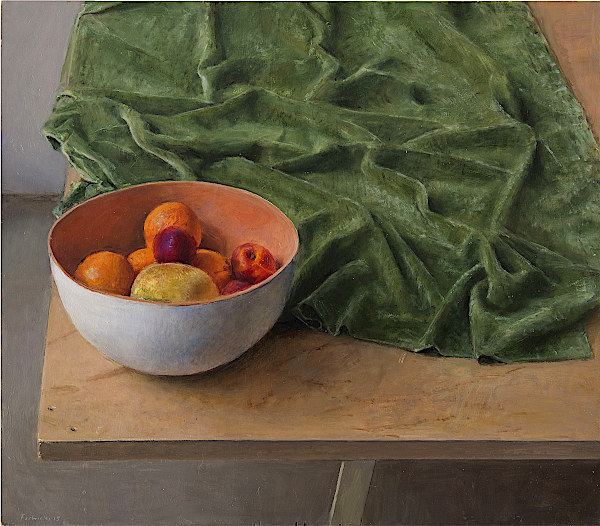 La obra de Leticia nace cargada de insinuación expresiva. Empezando por el color y sus matices, “cada pincelada implica una decisión y un riesgo”, la artista compone un universo de volúmenes y formas con los que, lejos de representar lo simplemente cotidiano, extrae la materia pictórica subyacente a la realidad. La técnica de Feduchi combina frescura y precisión, su estética pictórica se fundamenta en el color a partir de una cuidada selección de sujetos, original y a menudo impactante. Destaca el tratamiento de las telas y cerámicas, superficies artificiales que aparecen, sin rivalizar, junto a otras naturales, frutas, flores, donde la relación entre los elementos es la guía compositiva, sin olvidar la ubicación de los elementos en los límites bidimensionales, a menudo atrevida y original.